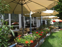 Auf unserer langen überdachten Terrasse mit 35 Sitzplätzen haben sie einen schönen Ausblick über Ensingen.